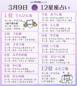 【3月9日🔮 #12星座占い ランキング】